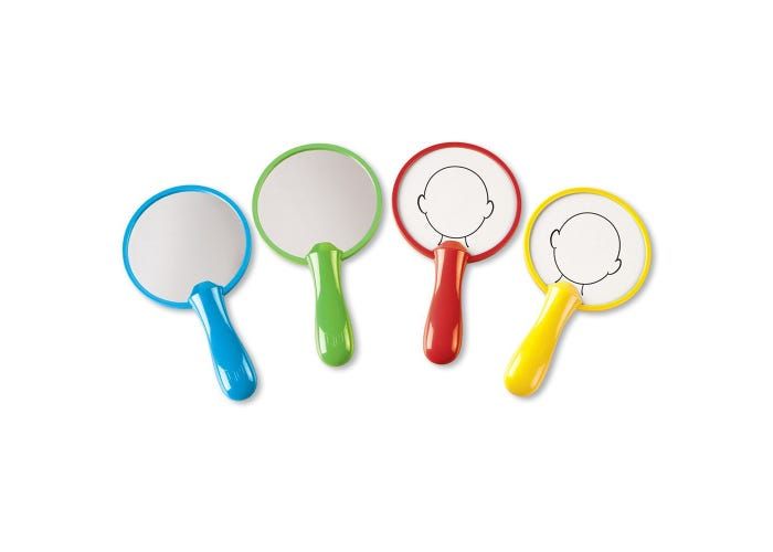Children study themselves and their emotions in the mirror before drawing the facial features on the reverse