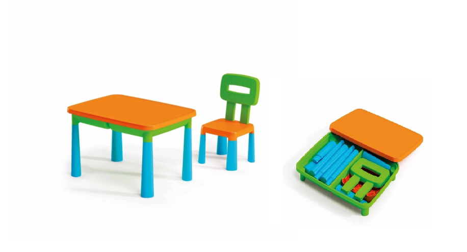 Multifunctional set for children - a table with a chair and a storage compartment.