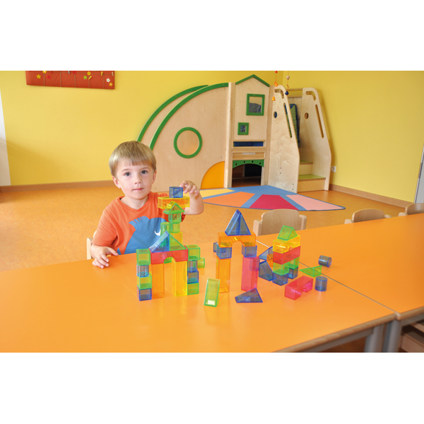 ... are made from the transparent bricks. Five colours and 6 different shapes offer a lot of possible games - this stimulates the brain activity, furthers creativity, the capacity to think in three dimensions and logic thinking.
