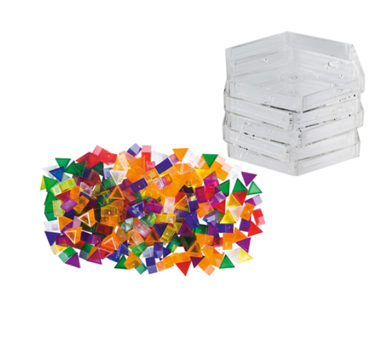 Content / Dimensions: approx. 440 elements (7 color assortments, side length 1.7 cm, 1 cm thick), 5 small transparent cover frames (Ø 11.0 cm); including theme templates.