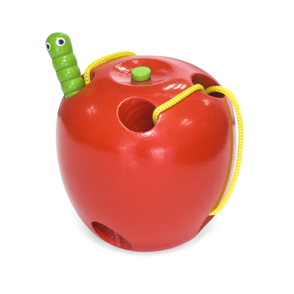A developmental game for children to promote finger dexterity. The set includes an apple, a worm and a string. Size: 80 x 87 x 80 mm