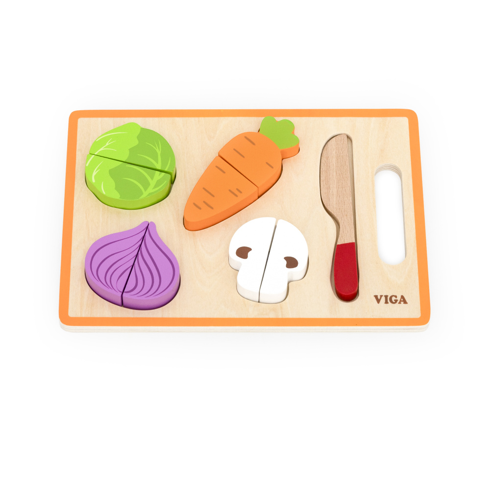 Set includes: Board, knife, cabbage, onion, carrot and mushroom.