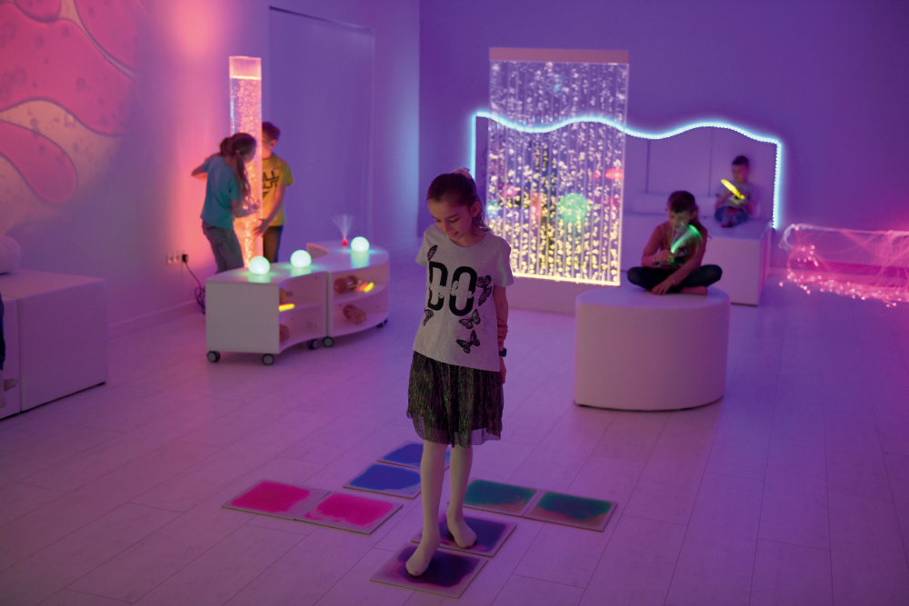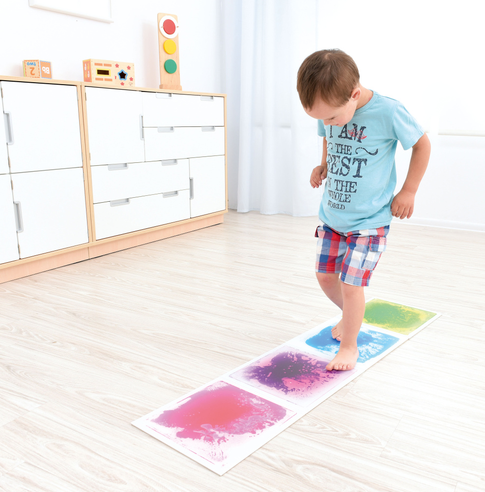 Šis ir komplekts kurā ietilpst 4 dažādu krāsu sajaukumu flīzes, kuras paredzētas sensorajiem un uztveres vingrinājumiem bērniem. Katras flīzes izmērs ir 30x30 cm.