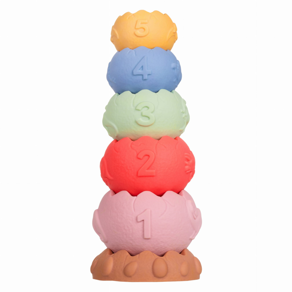 Produkts izstrādāts, domājot par bērna vispusīgu attīstību, piedāvājot dažādas spēlēšanās un mācīšanās iespējas, pateicoties izliektiem burtiem, cipariem un dinozauru motīviem. Turklāt piramīdai nav caurumu, kas padara to lieliski piemērotu spēlēm ūdenī.
