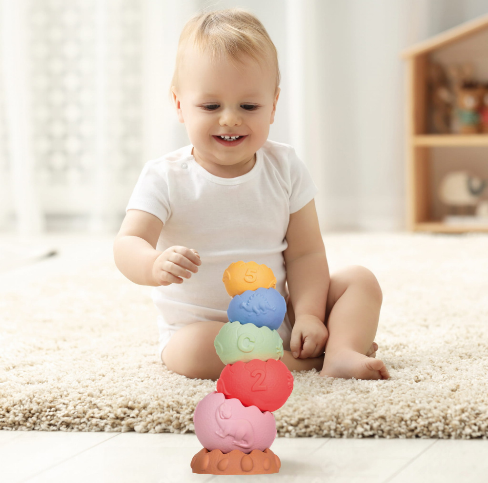 Katrs piramīdas elements ir veidots tā, lai mazulis varētu tos satvert, pārvietot un manipulēt. Šādi vingrinājumi atbalsta precīzu roku kustību attīstību, kas ir ļoti svarīga bērna smalkajai motorikai.