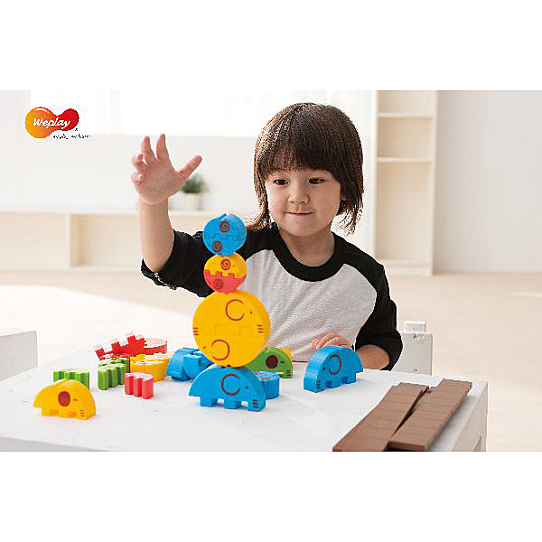 Jauki un krāsaini klucīši ar ziloņu formām 3 izmēros rada daudz jautrības un radošu iztēli. 2 blokus var apvienot aplī ripināšanai. Saliekamie bloki nodrošina dažādu līmeņu kraušanas spēles. Dēlīšos ir iegriezumi, kurus var izmantot kā šūpoles līdzsvara koncepcijai. Uzlabojiet smalko motoriku un rakstīšanas spējas, sakraujot blokus un atdalot apļa savienojumu. Nostipriniet bērnu plaukstas un muskuļus. Uzlabojiet uzmanību, veicot vingrinājumu, apvienojot 2 blokus aplī. Izveidojiet bērnu aritmētikas pamatjēdzienu. Veicināt bērnu krāsu izziņu un izmēru secības koncepciju. Piemērots komandas darbam, lai izveidotu sarežģītu montāžu. Lieliska cirka izrāde lomu spēlei!