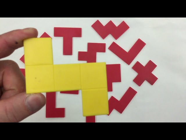 (12 gabali uz vienu pentomino kopā 72), kas iepakoti caurspīdīgā plastmasas traukā ar vāku, lai tos būtu viegli uzglabāt.
