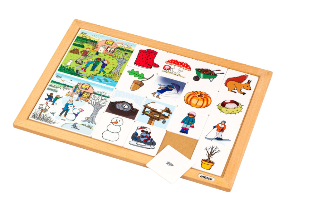 Identisku attēlu piemēri tēmas lapā ir sarkani lietus zābaki rudenī un putnu māja ziemā. Arī citi attēli atbilst noteiktai sezonai, taču rada lielāku izaicinājumu. Piemēram, padomājiet par ķirbi rudenī un slidošanu ziemā.