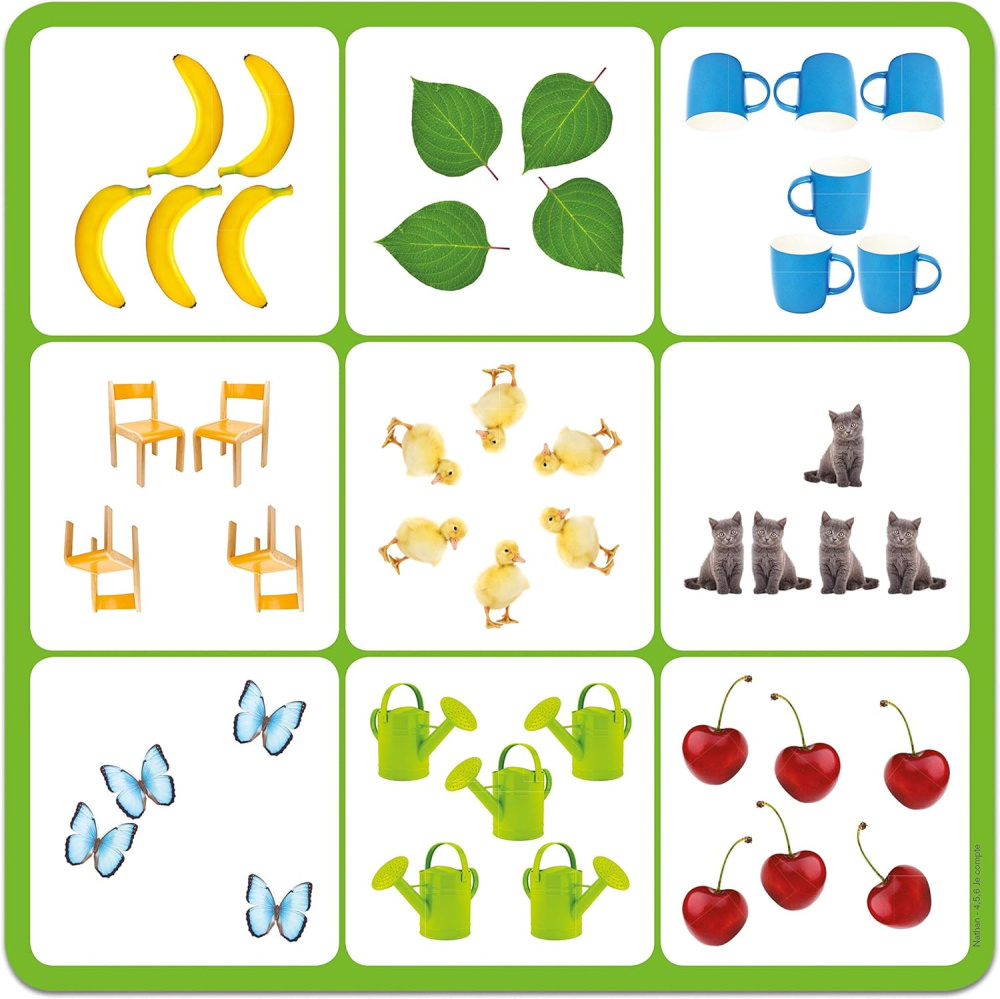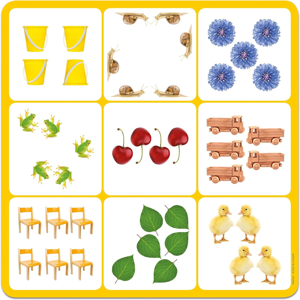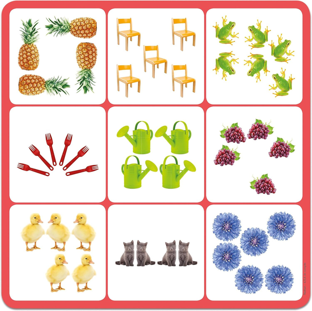 Šī spēle pievērš uzmanību skaitļiem gan rakstītā gan zīmētā formā. Tas arī palīdz bērniem atšķirt lietas vizuāli un uzlabot koncentrēšanos.