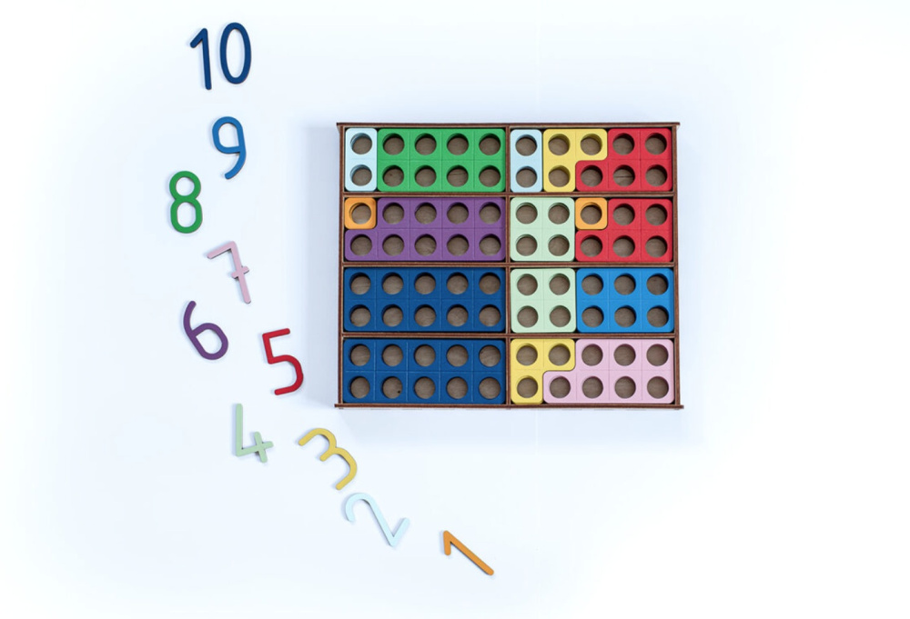 Matemātiskās plāksnītes koka kastītē, koka NUMNICON