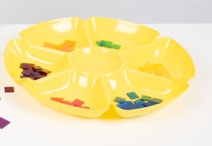 Šķirošanas paplāte zieda formā – metodisko materiālu sadales trauks.