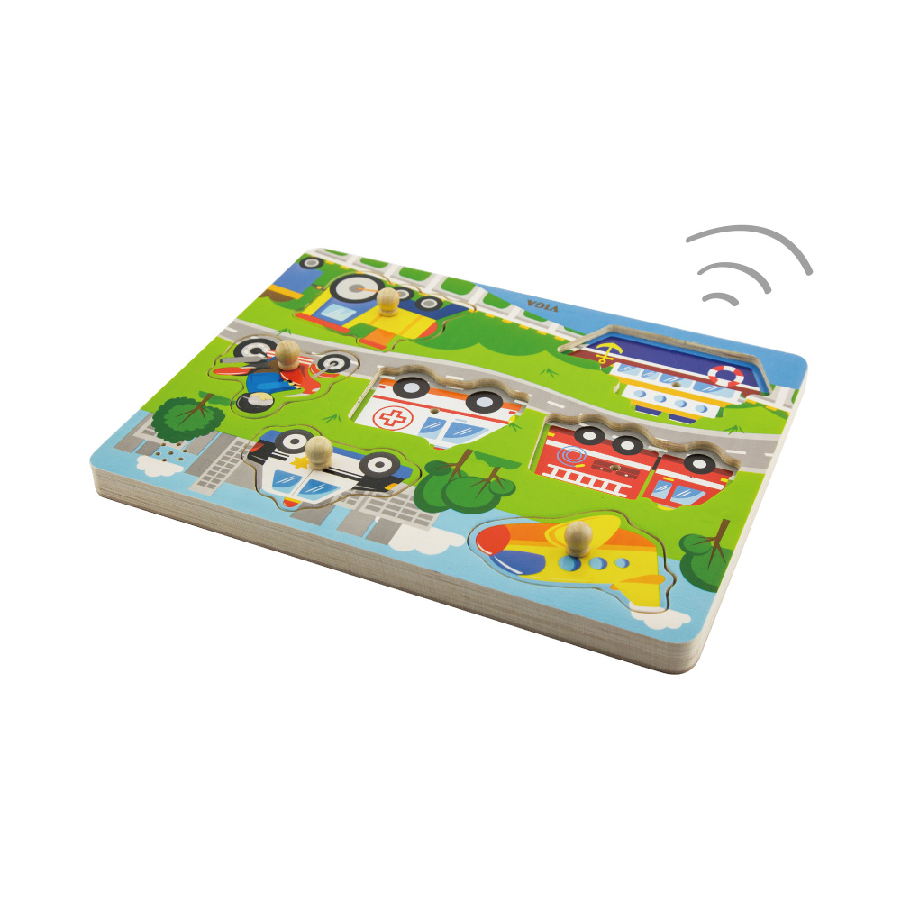 Skaņu puzle, podziņu puzle ar skaņām Transports, VIGA 51274