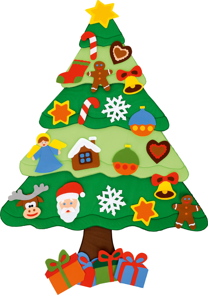 Iekļauti piestiprināmi elementi: 3 zvaigznes, 2 piparkūku sirsniņas, 2 piparkūku vīriņi, 1 piparkūku namiņš, 2 konfekšu spieķi, 2 sniegpārslas, 4 dāvanas, 2 nieciņi, 2 zvaniņi, 1 Ziemassvētku vecītis, 1 ziemeļbriedis, 1 zeķe un 1 eņģelis.