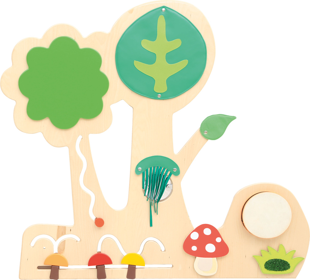 Manipulatīva siena no lakota saplākšņa, ar sensorām aplikācijām, labirintiem un koku zariem no dažādu faktūru auduma. Tie palīdz attīstīt pieskārienu, roku veiklību, roku-acu koordināciju un motoriku. Bērni var apgūt arī krāsas un formas. Kokā ietilpst 2 labirinti, bungas, spogulis, zāle un mušmires aplikācija.