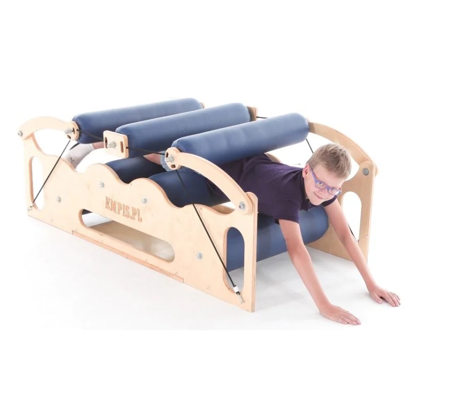 - nodrošina dziļu kompresiju un milzīgu proprioceptīvo stimulāciju, bērnam rāpojot caur kompresijas ruļļiem. Efekts ir līdzīgs tam, ko izjūt zīdaiņi, kad viņi ir ietīti autiņos - tas palīdz bērniem nomierināties un atslābināties;