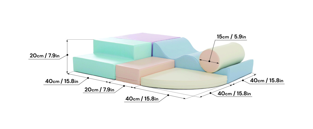 Maigās, apskaujamās formas ir kā draugi, lai bērniem attīstītu dažādas kustības un motoriskās prasmes. Dažādas formas palīdz bērniem uzlabot viņu koordināciju un motoriskās prasmes — no pirkstu kustināšanas līdz rāpošanai, kāpšanai un augstuma izpētei. Nebeidzamā formu kombinācija ir kā dārgumu krātuve, lai radītu izdomas bagātas pasaules – pilis, fortus un daudz ko citu. Bērniem augot, šīs formas kļūst par lieliskiem instrumentiem. Šķēršļu joslu veidošana, spēļu spēlēšana un pakāpienu iekarošana līdz gultām vai krēsliem — iespējas ir bezgalīgas.