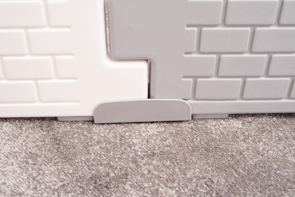 Komplektā 16 elementi:2 - 79,5 x 3,5 x 70 cm (vārti, manipulācijas panelis),8 - 38 x 3,5 x 70 cm,6 - stabilizatori; krāsa: balta un pelēka; materiāls: plastmasa.