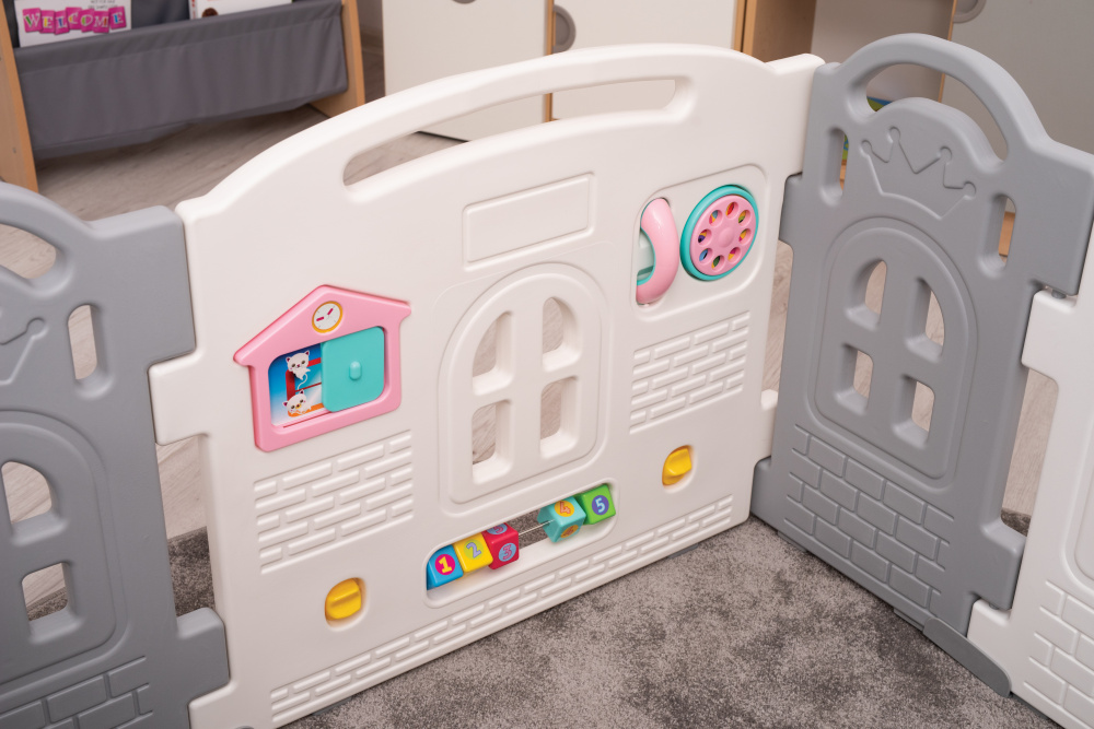 Funkcionāla rotaļlieta, kas nodrošinandrošu vietu vienam mazam bērnam vai mazai bērnu grupai. Viens no diviem lielākajiem elementi ir droši vārti ar ārēju aizsardzību, otra - piedāvā sešas manuālas darbības.