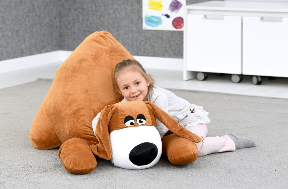 Mīkstais pufs, pildīts ar putupolistirola granulām, bet p;ārvalks izgatavots no poliestera.