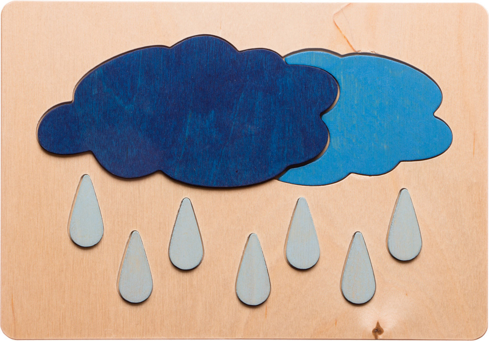 Saturs/materiāls: 12 dēlīši ar noņemamām detaļām, kas attēlo elementāras laikapstākļu parādības no bērza saplākšņa, spēles instrukcija, viss iepakots praktiskā koka kastē no dižskābarža.