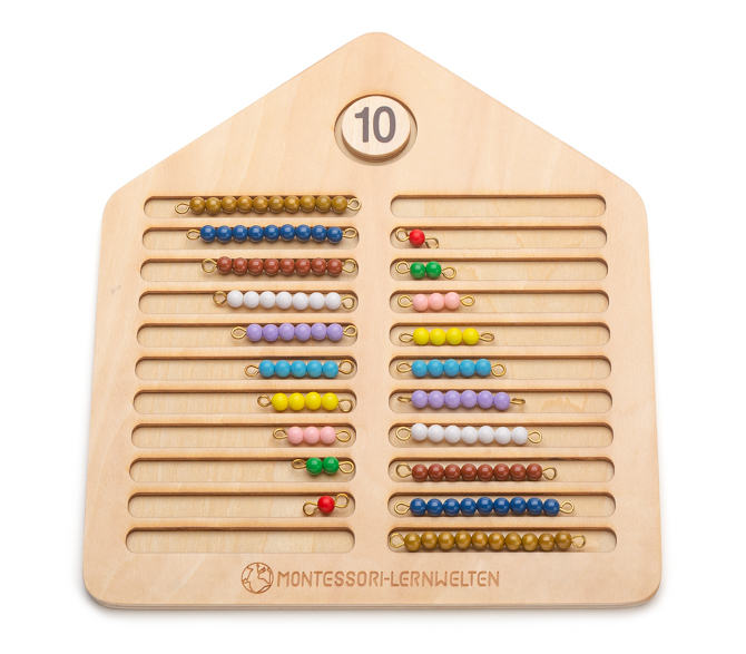 Pērļu māja skaitļu 10 apgūšanai, Montessori pērļu materiāls