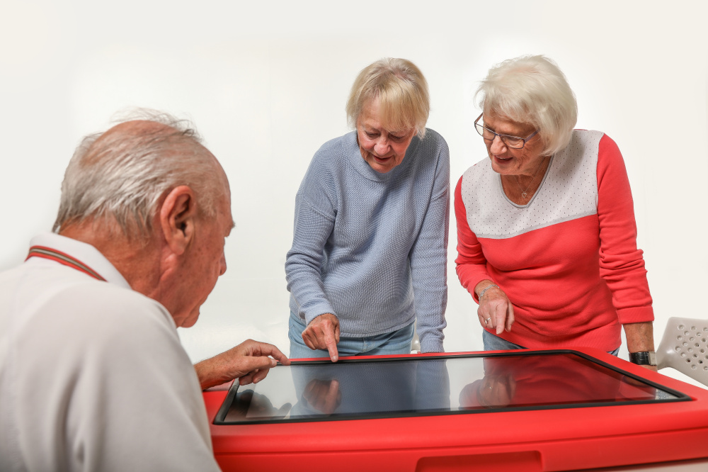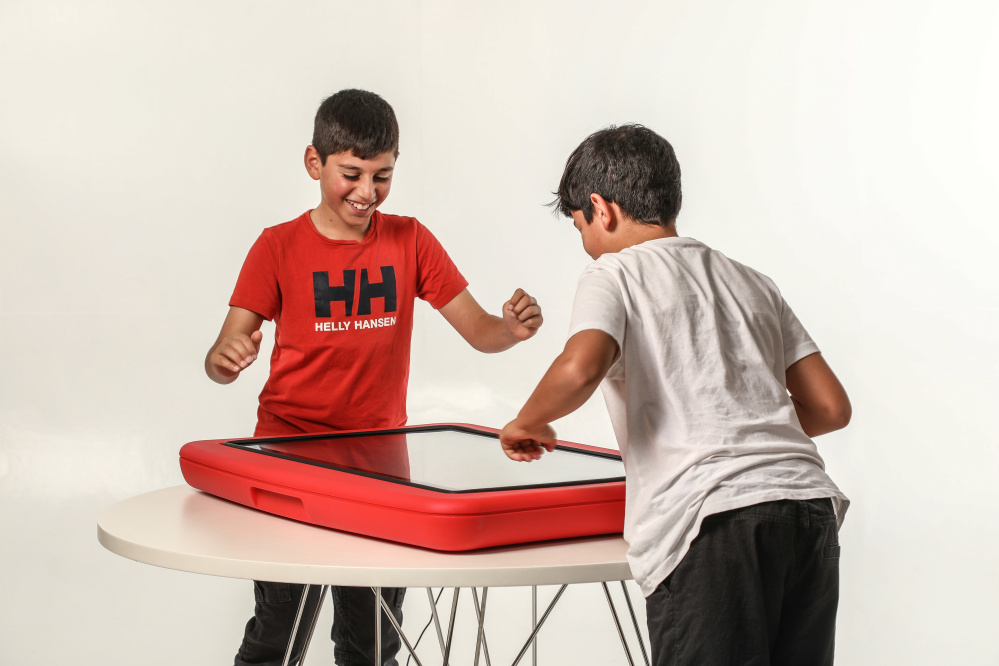 Interaktīvs 32” skārienjūtīgs ekrāns ir iebūvēts stabilā, krāsainā un izturīgā rāmī. Ekrāns ir izgatavots no bieza, rūdīta, pretrefleksa aizsargstikla. Viegli savienojams ar elektrotīklu un WiFi.