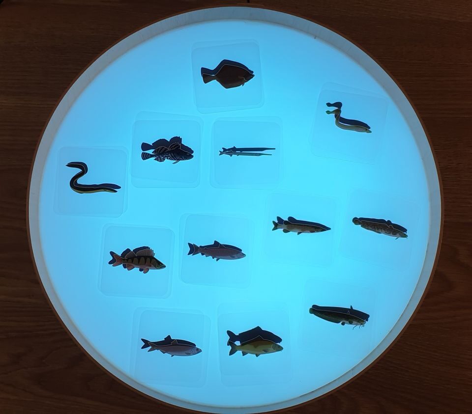 Komplektā: Līdaka, karpa, sams, vēdzele, lasis, reņģe, zutis, nēģis, buļzivs, bute, vējzivs, asaris.