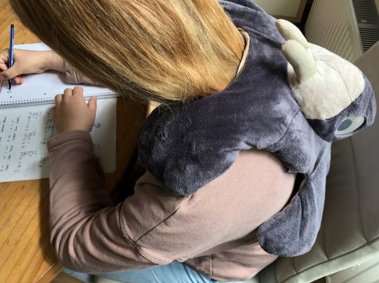 kā plecu segu, lai uzlabotu koncentrēšanās spējas, piemēram, pildot mājasdarbus.