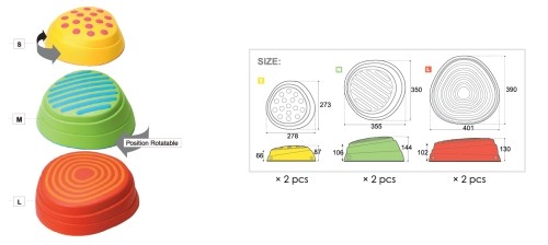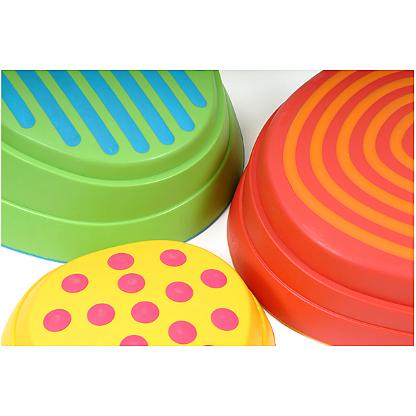 Punktu, līniju un koncentrisku apļu raksti uz akmens virsmas rada dažādas taustes sajūtas. Pretslīdes virsma un apakšējā mala nodrošina vislabāko stabilitāti un drošību.