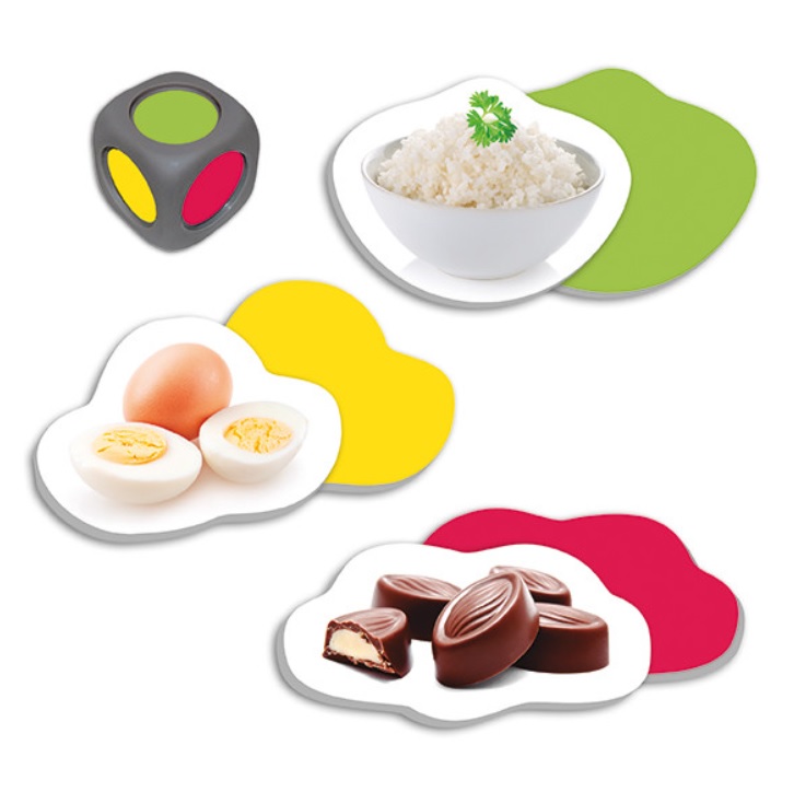 Zaļā krāsa ir paredzēta pārtikai, kas jāēd bieži, dzeltenā - reizēm un sarkanā - ēdienam, kuru vajadzētu ēst pavisam maz .