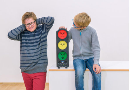 Bez skaņas funkcijas, iekārtu var izmantot kā SATIKSMES un EMOCIJU luksoforu