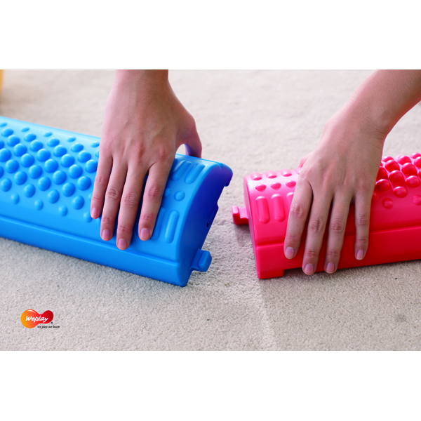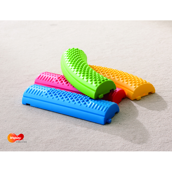 Taktilo ceļu var izkārtot dažādos veidos, kombinējot taisnus ceļus noo 8 elementiem. ""Izcilņi" uz detaļām stimulē pēdu nervu sistēmu. Detaļām ir iestrādāti pretslīdes punkti vislabākajai drošībai. Uzlabojiet bērnu kustības un līdzsvara spējas. Unikālie izvirzītie punkti uz celiņiem stimulē lietotāju pēdu pamatnes un uzlabo līdzsvaru un koordināciju. Maks. slodze 80 kg. Saturs: 8 x izliekti elementi.