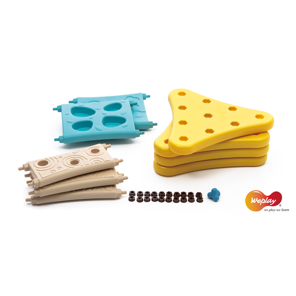 Pirmais džungļu trenažieris mazuļiem! Kad mazuļu kājas un rokas kļūst stiprākas, viņi sāk rāpot, lai izpētītu pasauli. "Līdzsvara kalnu" var salikt dažādās pozīcijās, lai uzlabotu bērnu motorisko koordināciju un fizisko spēku. Plato un šauro dēļu iedobumi ir piemēroti bērnu rokām un kājām un palīdz bērniem viegli un droši kāpt. Pateicoties vairākiem caurumiem trīsstūrveida dēļos, kombinācijas var mainīt atkarībā no aktivitātes mērķa, piemēram, kāpšanas rāmis, ala vai kāpnes.