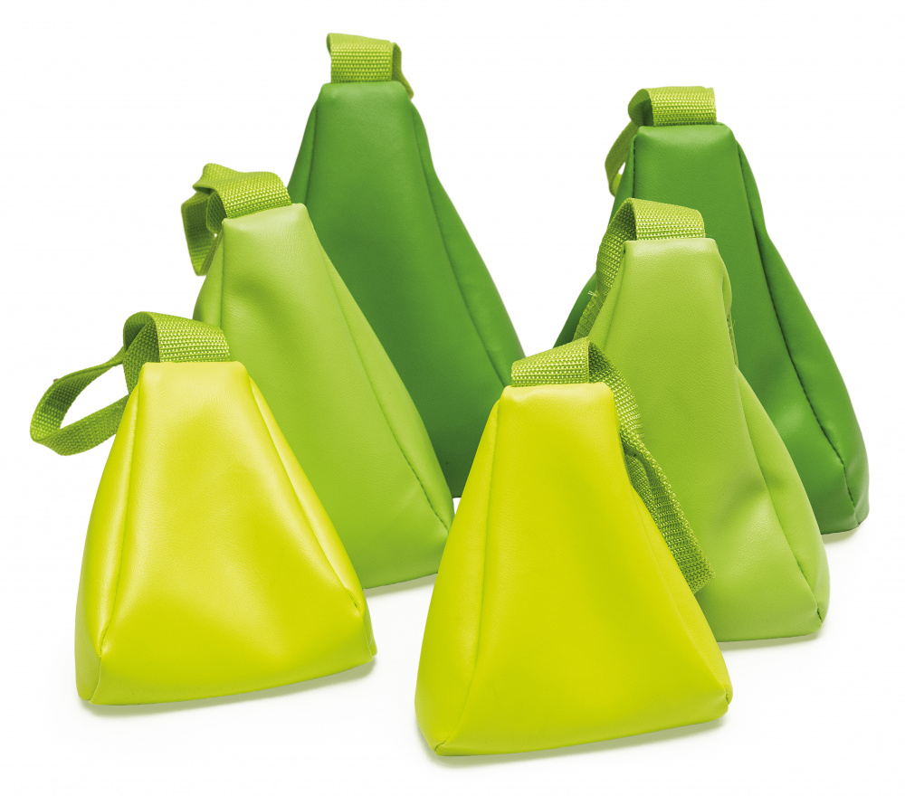 6 maisiņu komplekts dažādiem līdzsvara un muskuļu stiprināšanas vingrinājumiem. 3 dažāda izmēra un svara pāri, kas pārklāti ar izturīgu, viegli tīrāmu PVC audumu un piepildīti ar granulātu.