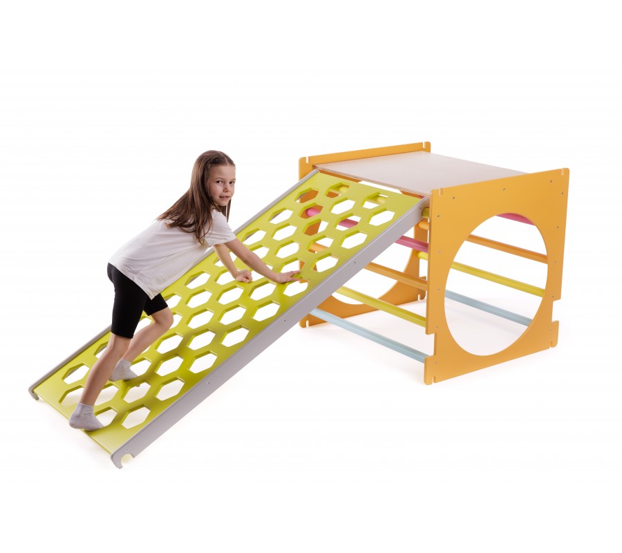 Šo komplektu var sakārtot vairākos desmitos veidos. Pateicoties tam, jūs varat izveidot interesantas takas, trases un kāpšanas šķēršļus, kas nekad nebūs garlaicīgi. Katru komplekta elementu var izmantot atsevišķi vai kombinācijā ar citiem komplekta elementiem.