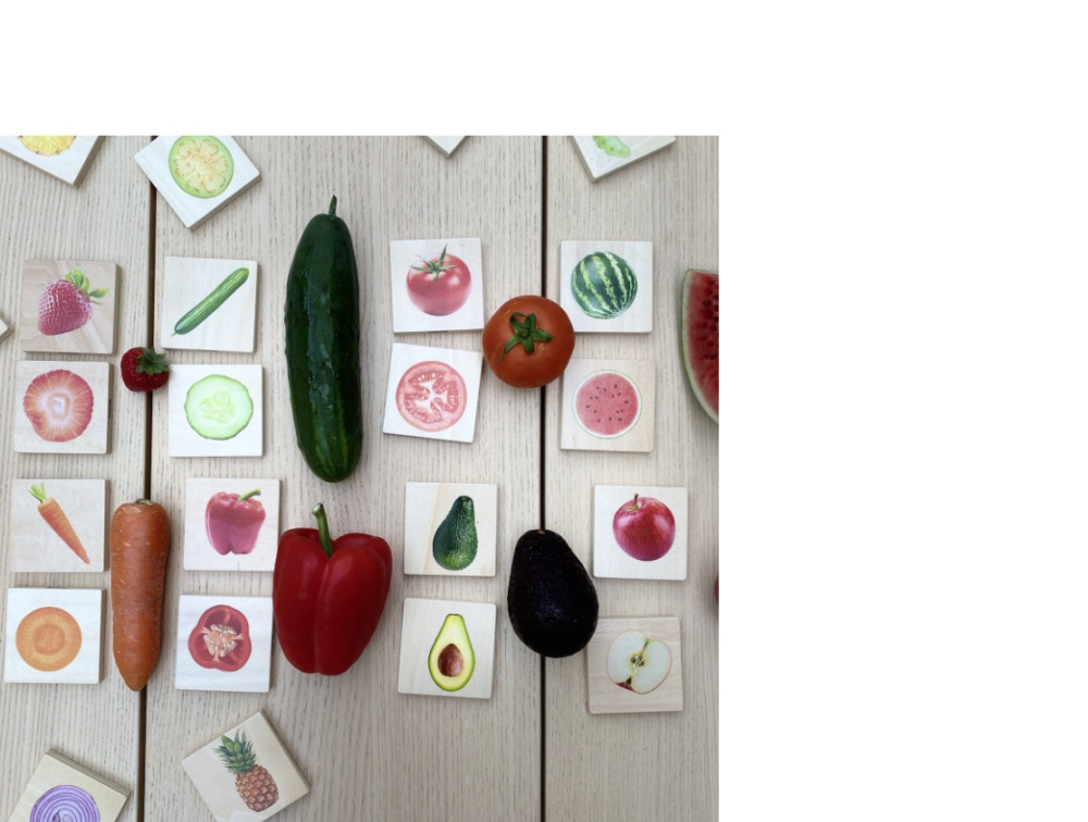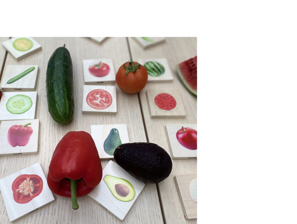 Šis ir arī lielisks materiāls nodarbībām, kurās ar bērniem pārrunāt par veselīgiem ēšanas paradumiem, par to kur un kā tiek audzēta pārtika. Tas veicina gan izpratni par pārtikas rašanos, par pasauli, kā arī veicina bērnu vārdu krājumu, runātprasmi un atmiņu.