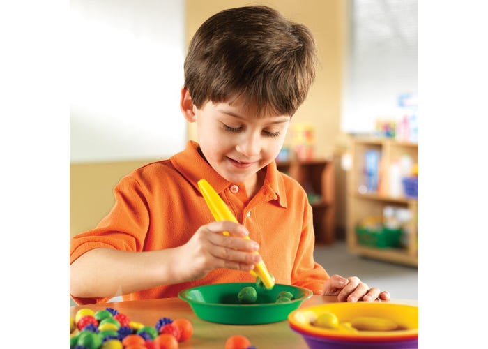 Strādājot pie satveršanas, paņemšanas un atlaišanas ar pinceti, bērni attīsta acu un roku koordināciju.