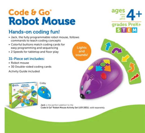 Джек, полностью программируемый робот-мышь, готов следовать командам и обучать практическим концепциям программирования! Создайте для Джека пошаговый путь, используя 30 двусторонних карточек кодирования, которые станут идеальным введением в концепции кодирования. Джек светится, издает звуки, имеет 2 скорости и цветные кнопки, соответствующие кодирующим картам, что упрощает программирование и последовательность действий. В комплект входит руководство по работе. Джека также можно использовать с набором действий по программированию робота-мыши STEM, чтобы получить больше возможностей для игры, обучения и развлечения!