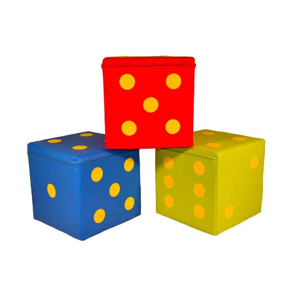 Мягкие игральные кости имеют множество применений в области игрового обучения и настолько прочны, что дети могут даже сидеть на них. Чехлы из искусственной кожи можно стирать и снимать благодаря застежкам-молниям.