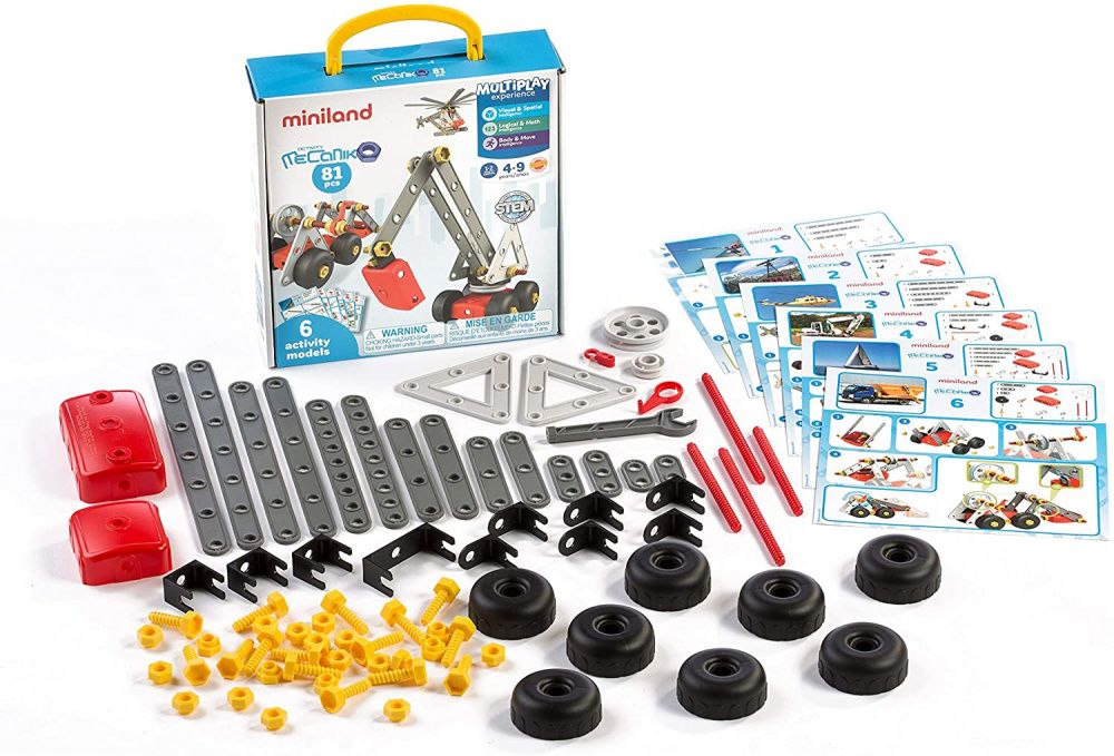 - Набор изготовлен из прочного пластика и включает гаечный ключ, винты, гайки и т. Д. c. элементы. Для развития способностей детей включены 6 руководств, в которых подробно описывается конструкция различных конструкций.