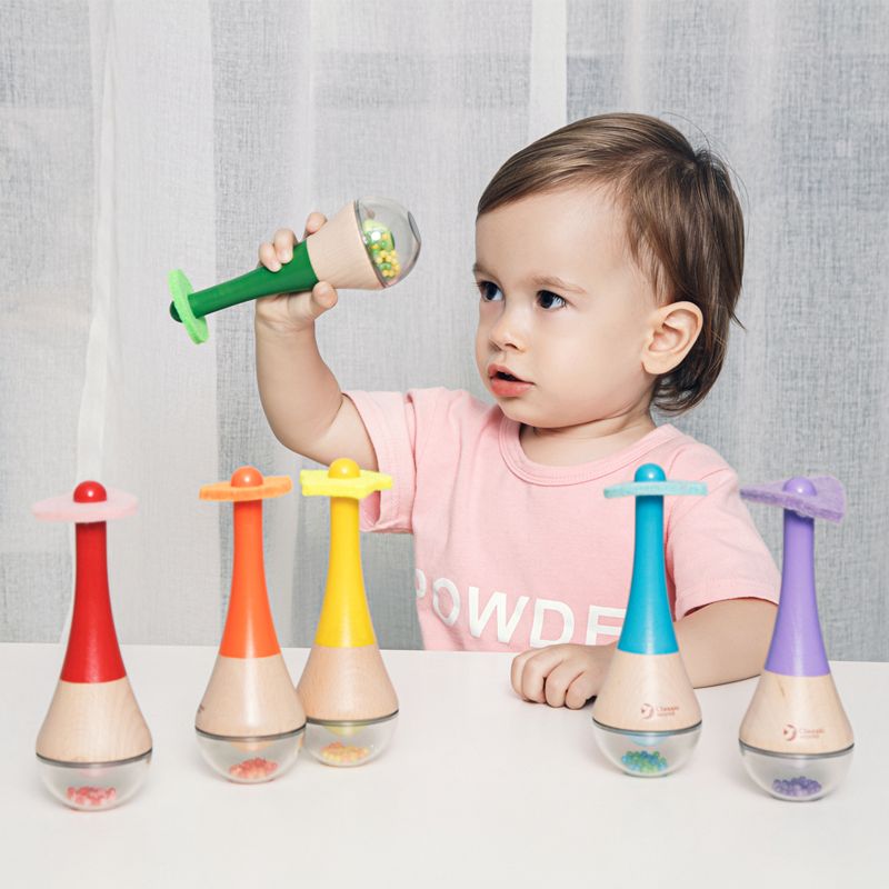 Деревянные маракасы, деревянная погремушка шести цветов радуги с подвижными шариками.