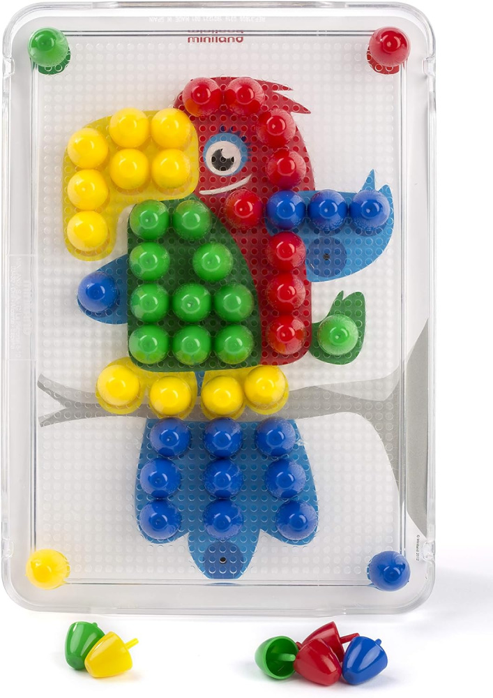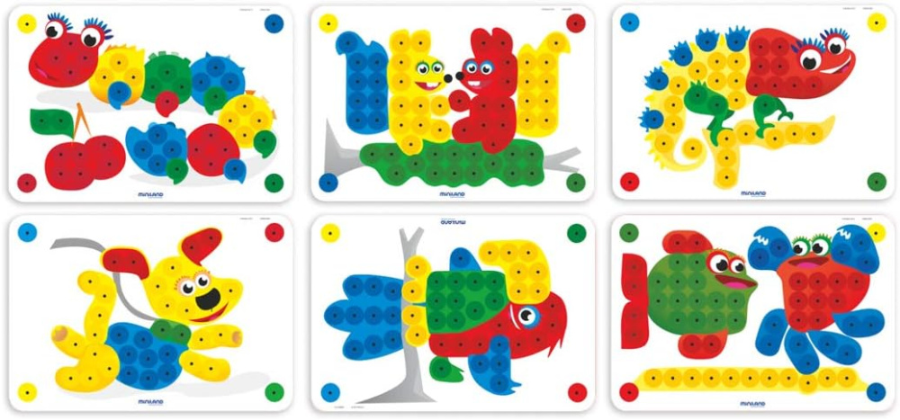 1 доска для мозаики, 100 пуговиц и 6 рабочих карточек из твердого картона.