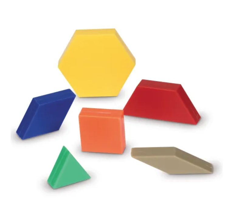 Используйте этот набор из 248 элементов мозаики, состоящий из шести форм и шести цветов, для изучения узоров, симметрии, измерения линейных и площадных величин, дробей и решения задач. Толщина блоков в один сантиметр позволяет создавать трёхмерные узоры.