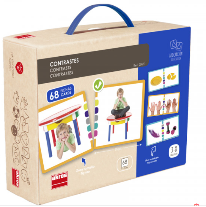 Каждая пара фотографий контрастирует либо по размеру, либо по форме, либо по условиям, тем самым способствуя не только развитию речи, но и поощряя употребление наречий и предлогов.