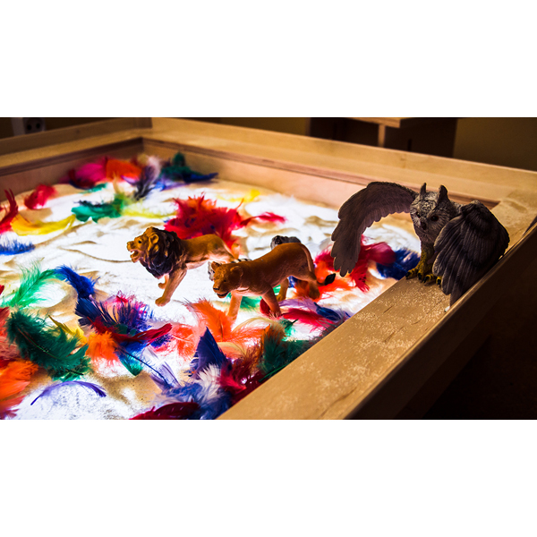 Освещенная песочница с манной, рисовой или кукурузной мукой доставит детям особое удовольствие.
