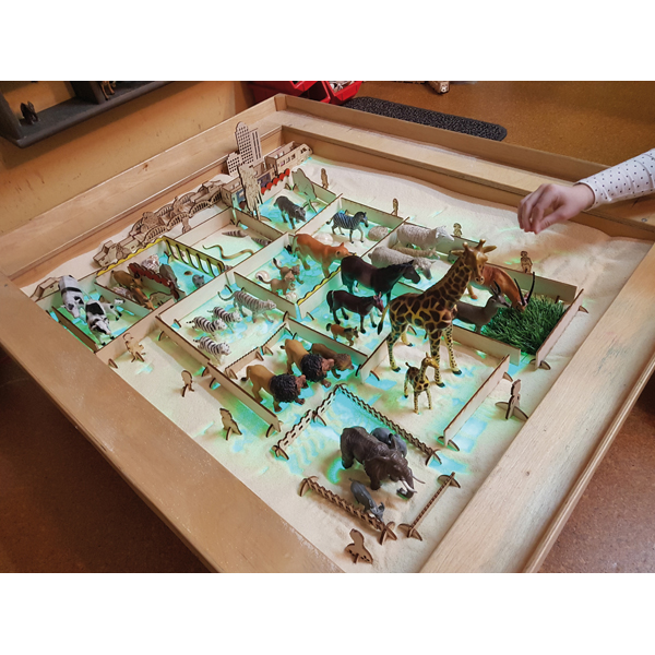 Прозрачная песочница просто подключается к шнуру питания длиной 180 см и безопасному трансформатору на 12 вольт.