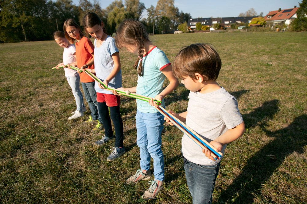 В этой игре на ловкость гибко соединенные стержни превращаются в канал, по которому катится мяч. Таким образом, мяч может передаваться из желоба в желоб, от игрока к игроку. Двигательные навыки, командный дух и, прежде всего, веселье и игры — в центре внимания ралли канала. В группе игроки учатся координировать свои действия друг с другом и таким образом приобретают ценный опыт в области социального обучения. Подвижная игра для 1 или более игроков. С 5 лет.