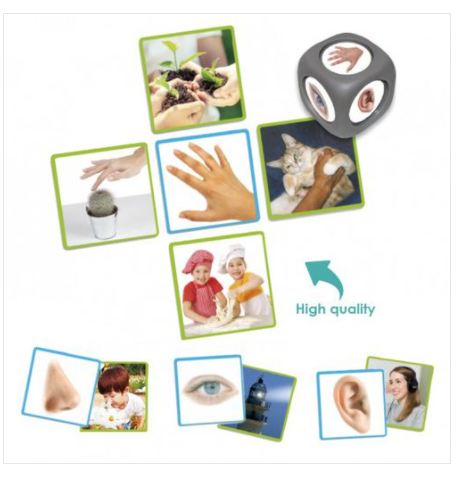 В набор входят 40 фотокарточек с различными ситуациями восприятия, изображающие 5 сенсорных приложений в повседневной жизни. И 10 карт с пятью чувствами.