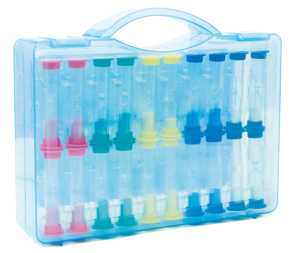 5 цветов: красный (10 мин), зеленый (5 мин), желтый (3 мин), синий (1 мин), черный (30 сек)